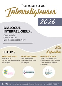 Rencontres interreligieuses à Limoges les mardis à 20h