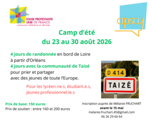 - Un camp d’été pour lycéens et étudiants, organisé par la paroisse d’Orléans